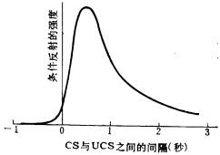 巴甫洛夫还系统研究了条件刺激与无条件刺激之间的时间间隔对形成条件作用的影响。实验结果表明,无条件刺激在条件刺激出现之后的0.5秒时呈现,确立条件反射的效果最好(见图5)。
