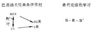 需要指出的是,在巴甫洛夫看来,重要的是引起反射的刺激,反射之后的结果是没有任何理论上的意义的。这样,尽管巴甫洛夫和桑代克都在分析刺激与反应之间的联系,但他俩对形成这种联系的程序以及对学习过程的解释是完全不同的,我们可以用下列程式来比较巴甫洛夫与桑代克的实验程序: