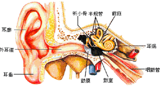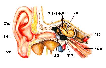 位听器官内耳骨迷路的一个组成部分,是传导并感受声波的结构。耳蜗是一螺旋形骨管,绕蜗轴卷曲两周半。由蜗轴向管的中央伸出一片簿骨,叫骨质螺板。耳蜗外壁有螺旋韧带。骨质螺旋板的游离缘连着一富有弹性的纤维膜,称为基底膜,延伸到骨管对侧壁与螺旋韧带相接。把耳蜗骨管分成上下两部,上部称前庭阶,下部称鼓阶,两管中充满外淋巴液。前庭阶的一端为前庭窗,鼓阶一端为蜗窗。两部分在蜗顶处的蜗孔相通。在骨质螺旋板近底处有一薄膜,称前庭膜,由前庭膜、基底膜和一部分螺旋韧带围成膜质蜗管,管中充满内淋巴液。螺旋器(Corti氏器)是感受声波刺激的听觉感受器,由支持细胞和毛细胞等组成,毛细胞为声波感受细胞,每个毛细胞均与神经纤维形成突触联系。毛细胞的上方有鼓膜,与毛细胞的纤毛相接触。外界声波通过淋巴液而震动鼓膜,鼓膜又触动了毛细胞,最后由毛细胞转换成神经冲动经听位神经而传到听觉中枢。