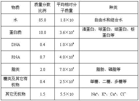 原生质中各种物质的平均值如下表: