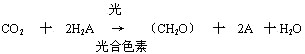 因此,细菌光合作用和绿色植物的光合作用,可以用下面的通式来概括(通式中的A对于绿色植物来说是氧,对于光合细菌来说则是硫或其他无机硫化物。
