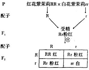 则有开红花、粉红花和白花,它们之间比例接近1:2:1,遗传图解如下: