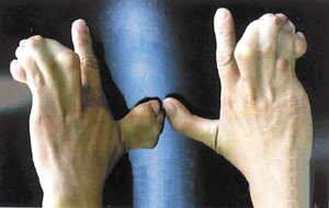 负责遗传病家系研究的王沙燕博士解释说,正常人每个肢体都是5个手指(趾),如果超过5个手指(趾)即为“多指(趾)”,这种多指现象不算少见;如果出现两个以上的指(趾)粘连现象,即为“并指(趾)”,属于一种