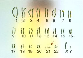 先天愚型是一种最常见的导致先天痴呆的常染色体三体征。它是由于第21号染色体比正常人多了一条所引发的,故又称“21三体综合”。“先天愚型儿”通常为先天性中度智力障碍。具有偶然性、随机性。其特征主要表现严重的智力低下,智商(IQ)多为20~60,只有同龄正常人的1/4~1/2。它有独特的面部和身体畸形,如小头,枕部扁平,项厚,眼裂小,外侧上斜,内眦深,眼距宽,马鞍鼻,口常半开,舌常口外,手指短粗,掌纹有通贯,小指内弯等。50%合并先天性心脏病、消化道畸形、白血病等。