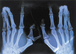 显性遗传性缺陷。经过文献资料查阅得知,典型的病例多为3/4的手指及4/5的脚趾发生并指(趾),可累及1~4个肢体。从基因缺陷方面进行检索,获得的最新一份相关文献是美国的报道,专家对3个美国家系进行的研究发现,多指并指发生者的基因突变位于2号染色体长臂上(2q31),这一发现被刊登在国际权威性杂志《科学》(《Science》)上;还有一位专家通过对一个患有“复杂双侧多指(趾)”的家系进行连锁分析,确定其基因定位于7号染色体长臂上(7q36)。在国内,一项863重点攻关项目中,有学者采用连锁分析的方法,对一个常染色体显性遗传多指(趾)家系中的7号染色体上的7个微卫星DNA标记及2号染色体上1个微卫星标记进行分析,证实以上位点与该家系的致病基因不连锁。也就是说,国内尚没有找到有关多指并指的致病基因。