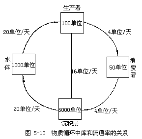 图5-10是一个池塘生态系统营养物质循环图示,可帮助理解上述概念及相互关系。