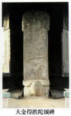 大金得胜陀颂碑虽屡遭创伤,但经过党和政府的多次保护维修,仍得安然健在。祝愿这稀世珍品,长存后世,晶莹四射,永放光芒。
