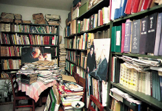 贾老的书房真正称得上是书的房了,什么地方都是书,你要不注意随时可能碰落一两本。除去有窗的那一面外,另外三壁墙边都摆着双排书架,书架上密密匝匝挤满了书,挤不下的只好被码到书架上面,最后一直顶到了天花板。这样,您要不仔细看,还以为这间房就是以书为墙呢!另外,房间里的桌子、椅子几乎都被书占领了。客人进来了,只好瞅空逮哪儿坐哪儿,要不,您干脆就站着吧,实在对不起了!在贾老的书桌上,