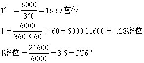 密位,系表示角度大小的一种量度单位。将圆周划分成6000个等分,每个等分所对应的圆心角即为1密位。炮兵量测角度,用密位为单位,可便于实地量算和迅速瞄准。地形图上偏角值,除用度、分、秒制表示外,还同时用密位制表示。它们的换算方法是: