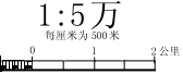 5.纬线比例尺:上述直线比例尺及斜分比例尺主要用于大中比例尺地图,而在小比例尺(1:100万以下)的地图上,由于投影的关系,使之各纬线(或经线)的长度变形不同,所以不能用一种直线比例尺来概括全图。此时应对每一纬线(或经线)画一个直线比例尺,结合起来叫作纬线比例尺。