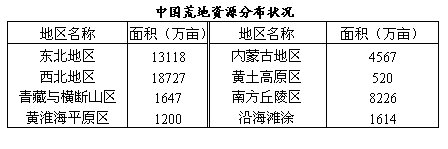 我国尚有数千万公顷宜农荒地和近1亿公顷宜林荒山草坡可供发展农林牧生产,尤其是我国东南部亚热带、热带山区,水热资源充足,可以建成我国综合性农业基地。长期以来,由于投入低,我国北方草地基本是靠天养畜,过度放牧,草地退化,生产率仅为世界平均水平的1/3。但通过增加投入,合理轮牧,防止草地沙化,发展人工饲料生产以提高牲畜质量,增加畜禽产量。海洋滩涂也是我国重要的后备资源,目前约有300多万公顷未充分利用,约有300多万平方千米的海洋和约930多万公顷的湖泊和水库,可供进一步发展水产养殖业。