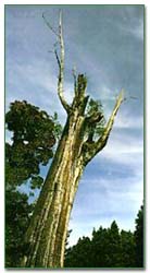 矗立在阿里山的天然森林区,是一株树龄达三千年的老红桧。红桧属柏科常绿乔木,质地幼坚,宜作桥梁、家具等,是珍贵木材之一。桧树一般生长缓慢,非百年不能成材,所散发的馥郁气息,历久不衰。