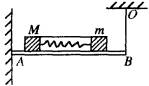 【例1】如图,光滑的木板AB水平放置,左端用一光滑铰链固定在墙上,右端用一轻绳挂在天花板,板上放着木块M和m,M和m之间用轻弹簧相连结,开始,弹簧被压缩,M和m之间用细绳拉住,并处于静止状态.细线剪断后,M和m在板上来回振动.问细线OB的拉力将如何变化?