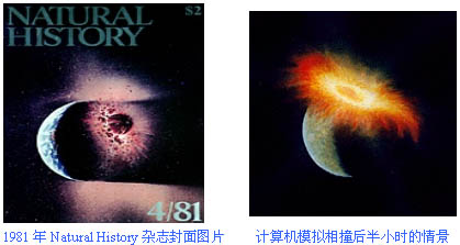 美国科罗拉多州西南研究所的Robin Canup等人为大冲撞假说注入了新的活力。他们把地球和与之相撞的天体划分为2万多个部分,分析相撞时各部分之间的压力、引力等相互作用及温度升高的现象,用计算机模拟不同初始角度和速度下的相撞过程,从中寻找比较合适的方案。每一种可能性,都要在工作站上算好几天甚至几个星期。