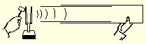 做两个纸筒。甲纸筒有底,稍粗些;乙纸筒是个管子,可以套进甲筒里前后移动。找一个音叉,用橡皮锤把音叉打响,让正在发声的音叉对准筒口,伸长或缩短纸筒,你会发现,当纸筒恰恰达到某一长度时,声音最响。如果没有音叉,用自行车铃的铃盖也可以,不过,要用钳子夹着铃盖里的螺钉,不要让铃盖和其他物体相接触。这就是空气柱共鸣实验。