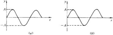 (1)因为波动是振动在媒质中的传播,故振动图像与波动图像的数学描述形式相同,两者都是按正弦或余弦规律变化的曲线,如图所示。前者一般用所谓的振动方程