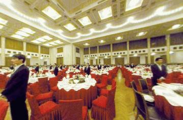 我国在建造首都人民大会堂时,为了兼顾音乐和我国汉语特点,将交混回响时间控制在2秒左右。对解决庞大建筑物的声学问题,作了一些恰当的处理:采用塑料夹板的吸收构造,以加强对低频部分的吸收。在二层和三层楼上7000个皮椅底下,装有穿孔吸声结构,当座椅无人时,椅底反过来可以代替人对声的吸收作用。这样可以使满场时和仅用一楼开会(3000人)时,都有较高的语言清晰度。