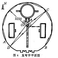 有意思的是在二音石北面的一块石板也能听到回声,不过只能听到一个回音,俞文光教授叫它“一音石”,图5是仪器记录,图中标号为1的回波是在一音石上击掌后经过380毫秒后的回波,其行程约为130米,它也约为回音壁半径的4倍,看来走的也是一个三角形,那么为什么一音石上没有东西配殿的反射波呢?从图1中可以看出,如果从一音石中心向东西方向划一条水平线,这条线是不会碰到东西配殿;显然,O1发出的击掌声也就在水平方向上不会遇到配殿的墙,当然也就不能再有反射波回到O1点产生第二个回声了。