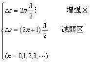 ②、增强区或减弱区位置是确定的,即增强点(域)始终增强;减弱区的点始终减弱.
