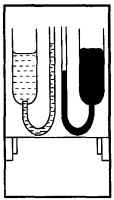 如图的演示能较好地显示浸润液体在毛细管中的升高和不浸润液体在毛细管中的降低现象.在竖直的木板上固定两个玻璃连通器,向它们里面分别注入红色水和水银,可以看到,水在玻璃毛细管中的水面比粗管中的水面高;水银在玻璃毛细管中的液面比粗管中的液面低.