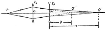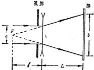 l.平行光束法:光路如图,孔屏上孔的直径a较透镜直径小,使平行近轴光束沿主轴入射,在透镜另一侧的屏上成一直径为b的光斑,则