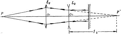 2.平面镜辅助法:光路如图,P为光源位置,置凸透镜
