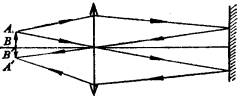 2.平面镜辅助法(自准直法).在光具座的一端安装一个暗盒,盒内有一电灯泡,盒壁前方开一个三角形或箭形的缝,缝上覆盖毛玻璃或其他半透明膜,电灯发光后,照亮缝隙,则这个三角形或箭形“物”被照亮,成为本实验的光源.调节光源的高度,使它的底部恰位于凸透镜的主轴上.在透镜的另一侧安装一平面镜,使镜面与透镜主轴垂直,调节光源与凸透镜的距离.当光源恰在焦平面上时,经凸透镜折射后的光线成为平行光,经平面镜反射后再一次经凸透镜折射而成像在光源所在的平面上.光路图如图所示.实验中只要观察到三角形成箭形“物”的下方有它的清晰的倒立实像,则这时“物”到透镜光心的距离就是焦距.此方法由于光束两次经过凸透镜折射,精确度比平行光会聚法高得多.