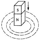 如下图所示,研究磁铁下方某一平面.当磁铁向下运动时,这一平面上各位置的磁感应强度都发生了变化,根据“第十九章电磁场和电磁波”将要学习的知识,变化的磁场周围能产生电场,在这个平面上将产生环形的感应电场,产生感应电动势.这个感应电场(和感应电动势)的产生与空间这个平面是否放有闭合导体无关.只要穿过某一面积的磁通量发生变化,在这一面积内将产生感应电动势.若在此平面放上闭合导体,将产生感应电流.