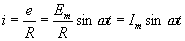 ②当线圈从中性面开始匀速转动时,产生的正弦交变电流和电动势,电动势和电流的瞬时值分别为: