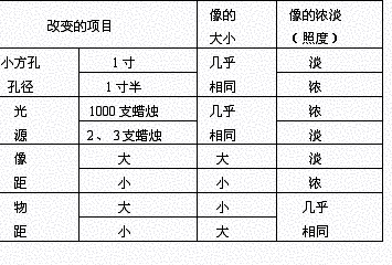 (3)改变孔的大小和形状.孔小时,所成像和光源的形状相同;孔大时,所成像与孔的形状相同而与光源形状无关.