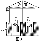实验装置赵在楼下两个相邻房间地面各挖一圆形(直径4尺)旱井,左井深八尺右井深四尺,左井内放一高四尺的桌子,将两个直径四尺的圆板密插1000支点燃的蜡烛后放在桌上和地上作为光源,再在井口加盖其中心开孔的板,以楼上顶板为屏,如图3所示.