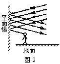 墨家学派在其所著《墨经》中首先研究了光的反射.《经说》:“景:日之光,反烛人,则景在日与人之间”.通常日光照人之影在来光方向的另一侧,但若日光经平面镜反射之后再照人体,则影落在太阳与人体之间了.这是一个演示光线反射的绝好实验,如图2所示.《墨经》还研究了平面镜成像.《经下》21条:“临鉴而立景倒.……”这里的“鉴”指平面铜镜,意思是说人若俯临镜子立着(平面镜水平放置),则所成之像是头部朝下颠倒的.《墨经》还描述了平面镜成像种种,指出像的形状、颜色、远近以及正倒都与物体相对称;也指出若物体移动像亦移动,物体距镜面近了像也随之变近,反之亦然.