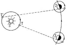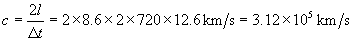 发现光以有限速度传播,是17世纪的一个伟大成就.伽利略首先认识到这个问题,并试图测量光的传播速度,但没有成功.丹麦天文学家罗默则用天文观测的结果证明了光是以有限速度传播的.他曾长期观察过木星的卫星(木卫一)食的现象,发现在一年中各个不同的时期里观察到的卫星食的周期并不相同.当木星的视大小变小(即地球距木星的距离增大)时,观测到的卫星食的周期大于平均值;当木星的视大小变大时,观测到的卫星食周期小于平均值.考虑到木卫的实际运动,极少可能有这种不均匀性,观察到的现象只能证明光速有限的假设.因为,当地球与木星的距离逐渐增大(减小)时,来自木星的任一光信号到达地球时要比前一信号多(少)走一段距离.1676年,罗默从他的观测结果中推出,光穿过地球轨道直径需要22分钟.也就是说,从地球位于距木星最近的T点观测到的木卫食的时刻推算出的半年后地球位于距木星最远的T′点应该发生的卫星食的时刻,要比实际观测到的结果早22分钟(参看图示,根据现代观测,这个值为994±2秒).由于当时尚不知道地球轨道大小的准确数值,而且罗默的观测也不够精确,所以没有可能求出光速的精确值来.后人用相同的方法 进行测量,根据地球轨道半径为1.497×108千米,得到的光速为c=(3.010±0.06)×105 km/s.