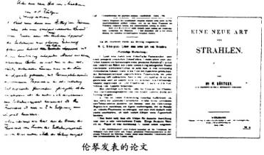 伦琴对物理学的最主要贡献,是发现了X射线,又叫做伦琴射线.1895年11月8日,伦琴正在做阴极射线实验.阴极射线是电子流构成的,而电子流是通过放在一个几乎是真空的玻璃管两端的电极加高电压产生的.阴极射线本身没有特殊的穿透性,而且几厘米厚的空气就能阻挡它.这次,他用很厚的黑纸把阴极管完全包起来,以便通电时,没有光泄露.然而,当伦琴给阴极通电时,他惊奇地看见,不远处凳子上的一块荧光屏在发光,好像是一束光造成的,他关掉试管,这块徐有氰亚铂酸钡的屏幕就停止发光了.由于阴极射线管是被紧紧包裹着的,伦琴认识到,当电流通过试管时,一种看不见的射线从管子里发射出来,他确信这个现象不是阴极射线造成的,因为它只能穿透几厘米厚的空气,他断定存在着一种新的射线.