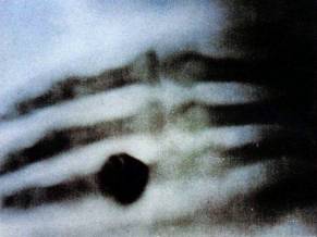 为了验证自己的想法,年过半百的伦琴依靠他特有的毅力,吃、住在实验室,一连做了七个星期的秘密实验.他试验过各种各样的材料,几千页的书,厚厚的玻璃板,二三厘米厚的木板,几厘米厚的硬橡胶……,这种新射线都能穿透.有一次,当伦琴把手放到放电管和荧光屏之间的时候,他惊呆了:在屏上看到自己的手完全变了样,好象是拼凑起来的几根黑糊糊的干树枝.当伦琴清醒地知道这干树枝就是他手指骨骼的时候,他激动得几乎要跳起来.他立即回家把自己的发现告诉了妻子.据说当时妻子正在生他的气,责怪他这么长时间不回家,说他有意编造“发现”骗她.于是伦琴把妻子带到实验室,请她帮忙做个实验.他让妻子把左手放到放电管前面,然后把用纸包好的照相底片放在她的手后面,过了十几分钟,把底片一冲洗,获得了一张手骨的照片——世界上第一张人类活体骨胳的照片.妻子不解地问:“这是怎么回事?”伦琴说:“这是一种穿透力很强的新射线作用的结果.”“这种新射线叫什么名字?”伦琴摇了摇头回答说:”不知道,它是一个未知数,就叫它X射线吧!”.