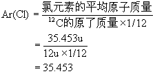 由此可见,原子量是一个比值,是一个无单位的纯数,是原子的平均相对质量.原子量常用符号Ar(E)表示,A代表原子量,r表示相对,E代表某元素.例如,氯元素在自然界中有两种同位素:核素