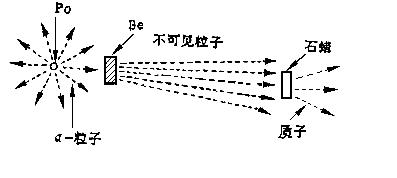 1932年法国的物理学家约里奥·居里(1900—1958)和伊丽英·居里(1887~1956)夫妇发现,如果用来自铍的这种射线去轰击含有大量氢原子的石蜡,竟能从石蜡中打出质子(见上图).通过计算表明,如果这种射线是