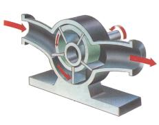 和往复式抽水机相同的原理,把活塞换成马达带动的齿轮、扇叶或螺旋.主要在给液体加压,转轴由马达带动,速度高,多运用在黏稠的液体,如石油.