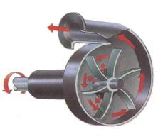 内有一个叶轮,当帮浦转动时,叶轮问的液体藉由旋转的离心力,将液体批出由出水口流出. 液体干不干净,都没有影响.常用在农业灌溉,因灌溉水含有泥沙,所以都采用离心式抽水机