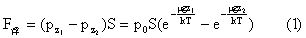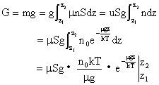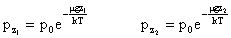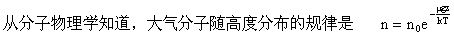 式中p0为地面附近(z=0)的大气压强,μ为一个气体分子的质量,k为玻耳兹曼常数,T为绝对温度(位置z1、z2温度相同).