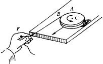例如,一质量为m,半径为R的匀质圆盘平放在光滑的水平面上,盘面也绝对光滑.若在圆盘的边上作用一个力F,设力F的作用线通过圆盘质心C(见图).当圆盘在力F的作用下移动s时(所经历时间为t),F所做的功