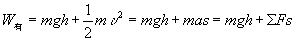 物体作匀加速运动,到达斜面顶端时,动能增大了.这部分动能是作用力做功转变而来的,它又可以做功,应属于有用功.所以:
