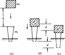 先作简单分析.假定锤落下后不回跃,则整个物理过程可分为主要两步来考虑.产生,桩在极短时间内与下落的锤发生一次完全非弹性碰撞.因碰撞时间极短,可以认为当锤和桩达到共同速度时桩还未下降,此过程动量守恒;之后,桩和锤作为一整体,将凭碰撞末了所具有的能量克服地基阻力下陷,此过程遵循功能原理.