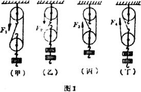 例 将定滑轮和动滑轮按下图四种情况装配,设:每个钩码重力为G,动滑轮重力为