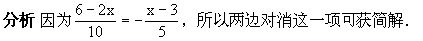 约去公因数2后,两边的分母相同;②两个常数项移项合并得整数.