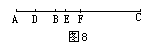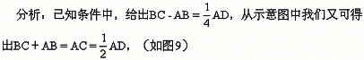 分析:从示意图(图8)中,我们得到了D,E,F点的大致位置,它们之间的度量关系却借助数量关系的分析.在众多的线段中,发现BE的长度是最基本的,知道了它的数量,其余线段的长度都可以求得,因此我们选择BE作为基本量,列出一系列的关系式.