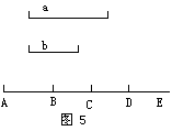 ②用圆规在射线AE上顺次截取AB=a,BC=CD=b(图5).