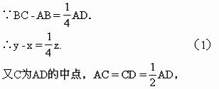 例9 一条直线上顺次有A,B,C,D4点,C为AD的中![]()
