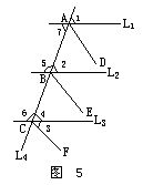 例3 如图5中,L1∥L2∥L3,L4截L1、L2与L3,且AD∥BE∥CF.问: