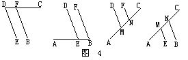 简析:可把图3分解成四个简单的图形(图4),可得到六对相等的同位角,即